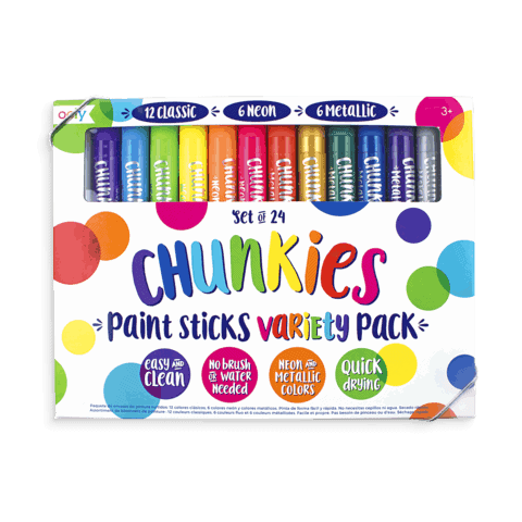 - Tempera paint: We love regular tempera paint for finger painting or using traditional paint brushes, but my kids are obsessed with these paint sticks. These Chunkies from Ooly make painting a little less messy for days when you just aren’t up for a full painting extravaganza. Which is most days….