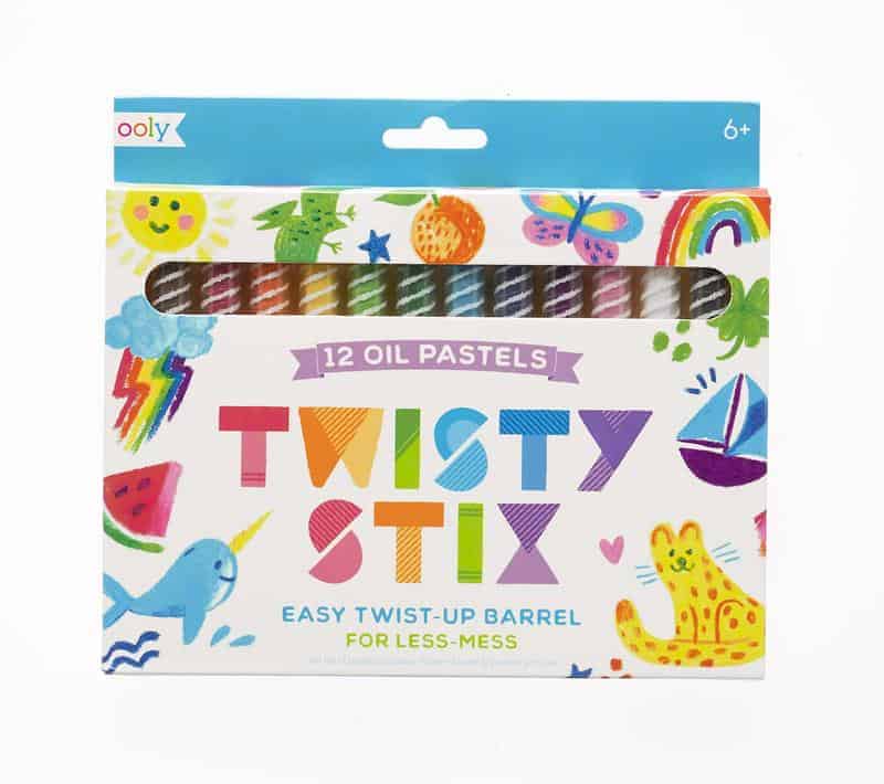 6. Oil pastels: Oil pastels are another one of our top kids art supplies. We love these because kids can use their hands to smudge, make finger prints, mix colors and generally get messy creating. They are sort of a mix between painting and drawing. I love the Ooly Twisty Stix because they are much less messy than your average oil pastel.