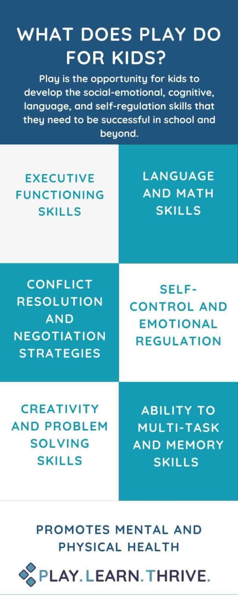 It is how they develop the cognitive, social and emotional skills that allow them to succeed in all things. In a recent clinical report by the American Academy of Pediatrics (AAP) titled “The Power of Play: A Pediatric Role in Enhancing Development in Young Children” the abstract states play is “a singular opportunity to promote the social-emotional, cognitive, language, and self-regulation skills that build executive function and a prosocial brain.”